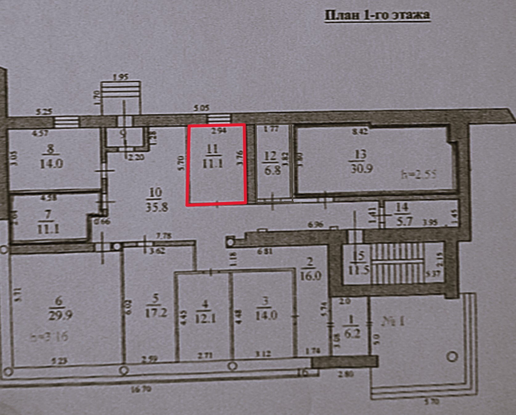1. Поспект Героев, д.54, помещение №11. Площадь офисного помещения 11,1 кв.м
